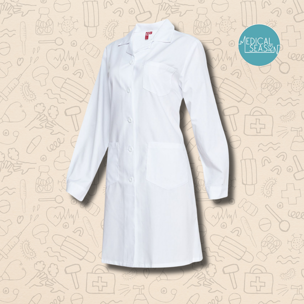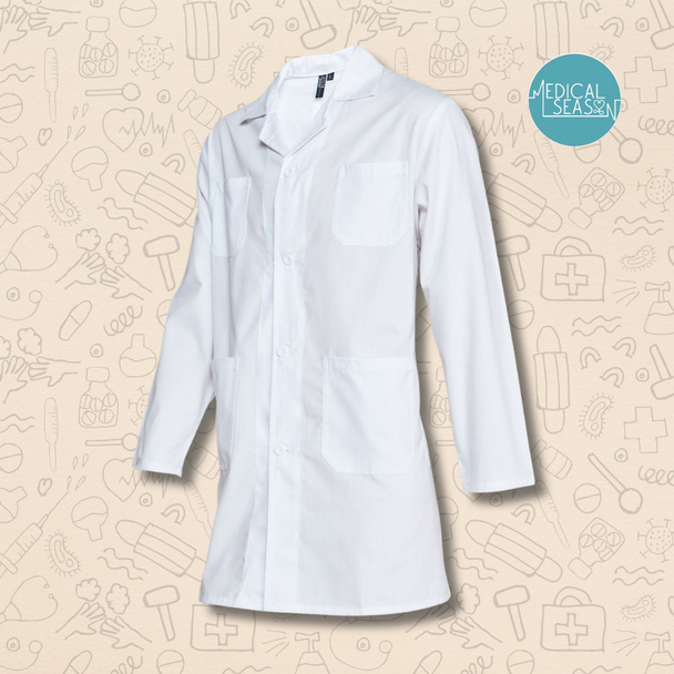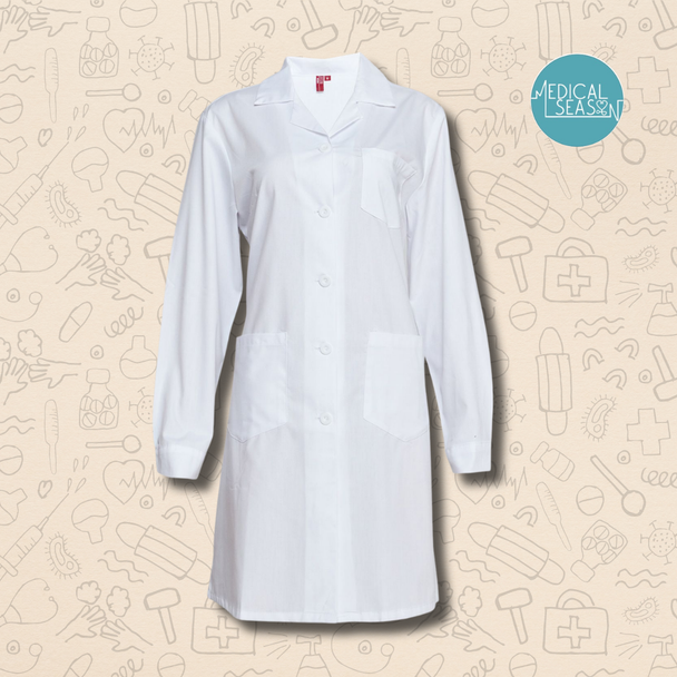 El abrigo protege su ropa de calle y también sirve como uniforme sencillo. Sus materiales típicos son algodón + poliéster de color blanco.
